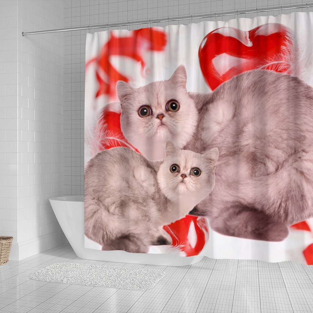 Exotic Shorthair Cat On Red Print Shower Curtains-Free Shipping
