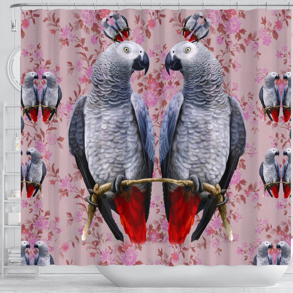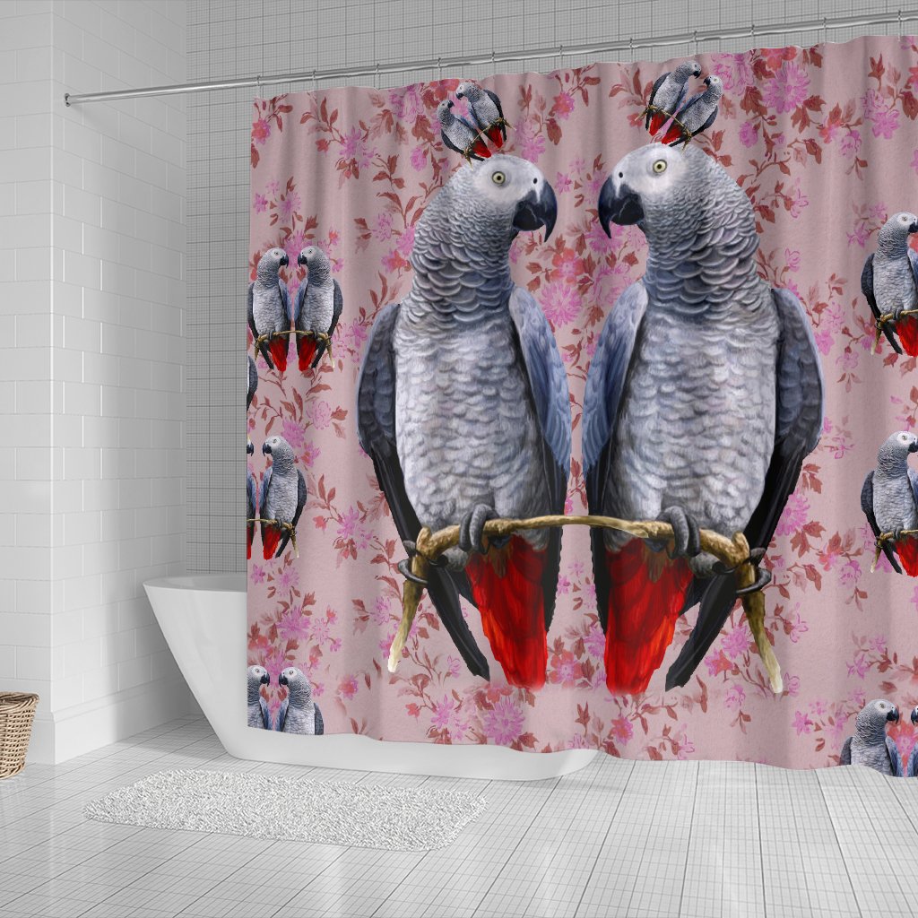 African Grey Parrot Floral Print Shower Curtains-Free Shipping