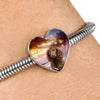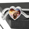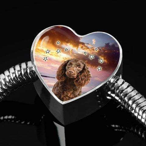 American Water Spaniel Print Heart Charm Steel Bracelet-Free Shipping