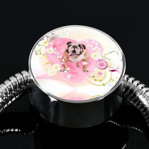 Bulldog Print Circle Charm Steel Bracelet-Free Shipping